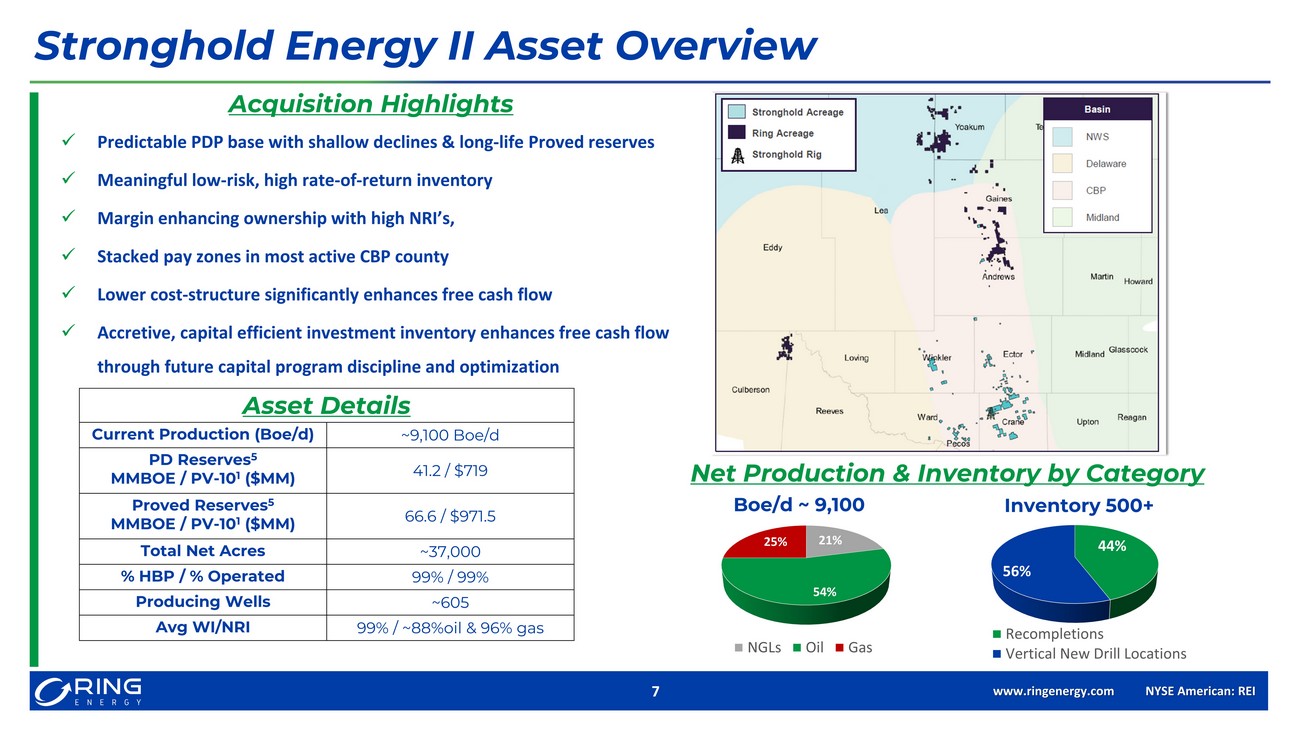 www. ringenergy.com NYSE American: REI RING ENERGY ACQUIRES STRONGHOLD ENERGY II TRANSACTION SUMMARY July 5, 202 2 INCREASING SHAREHOLDER VALUE ENHANCING SIZE AND SCALE LOWERING BREAK - EVEN COSTS