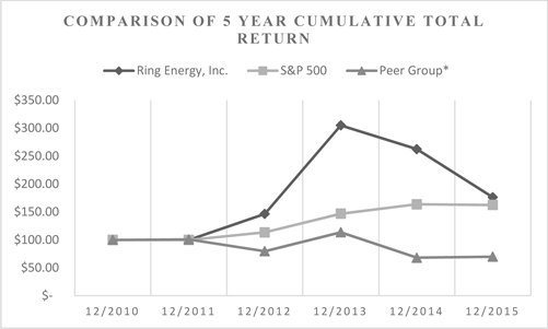 | · | De-risked Permian acreage position with multi-year vertical drilling inventory. As of December 31, 2015, Ring has drilled 189 gross operated wells across its leasehold position with a 100% success rate. The Company has also re-stimulated 34 existing wells with attractive well economics. Ring has identified a multi-year inventory of potential drilling locations that will drive reserves and production growth and provide attractive return opportunities. As of December 31, 2015, Ring has 212 identified proven vertical drilling locations in Andrews and Gaines Counties and 43 identified proven vertical drilling locations in Culberson and Reeves Counties in its proved undeveloped reserves. It believes it has an additional 2,478 potential locations based on 10-acre downspacing in Andrews and Gaines Counties and 489 potential locations based on 20-acre downspacing in Culberson and Reeves Counties. The Company views this drilling inventory as de-risked because of the significant production history in the area and well-established industry activity surrounding the acreage. |