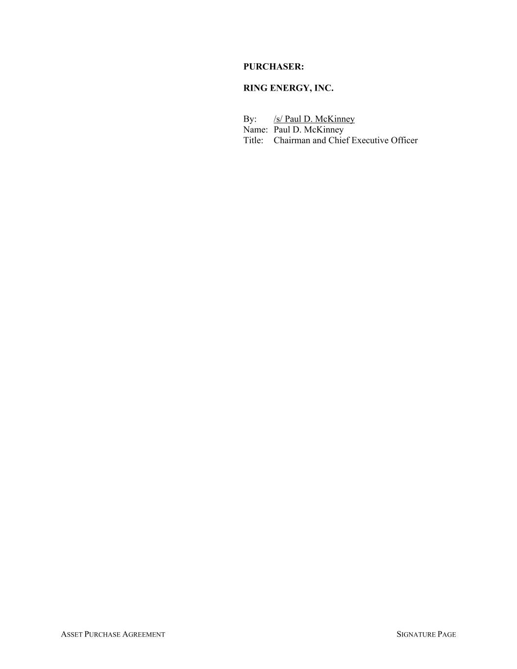 ASSET PURCHASE AGREEMENT SIGNATURE PAGE PURCHASER: RING ENERGY, INC. By: /s/ Paul D. McKinney Name: Paul D. McKinney Title: Chairman and Chief Executive Officer