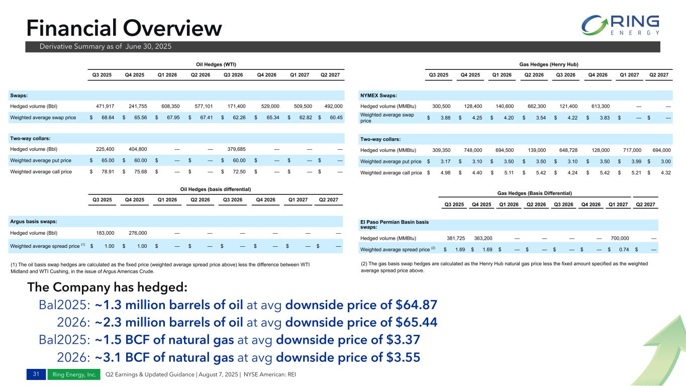 www.ringenergy.com FINANCIAL OVERVIEW Q2 2025 EARNINGS & UPDATED GUIDANCE | August 7, 2025 | NYSE AMERICAN: REI